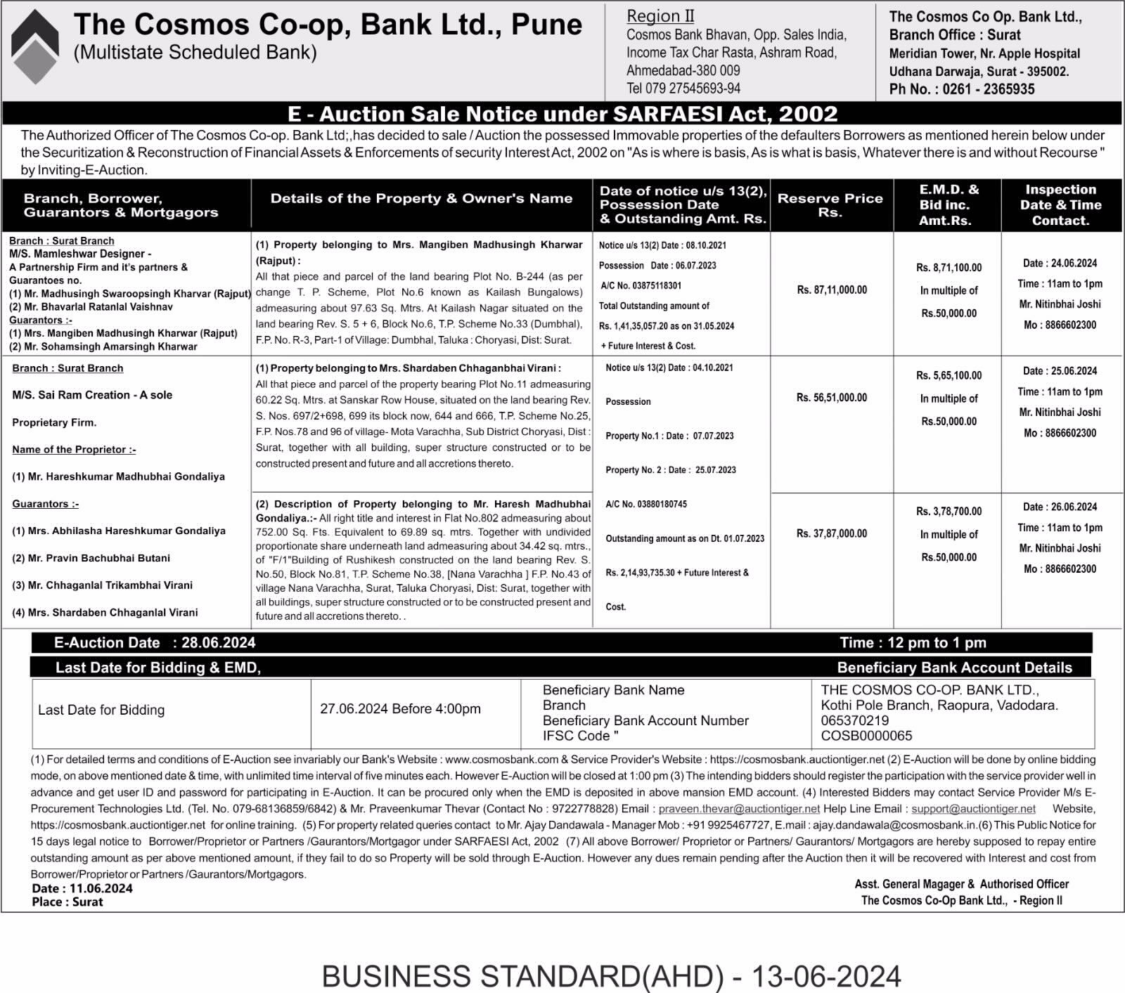 E-Auction Notice For Mr. Kiran Rajendra Shah